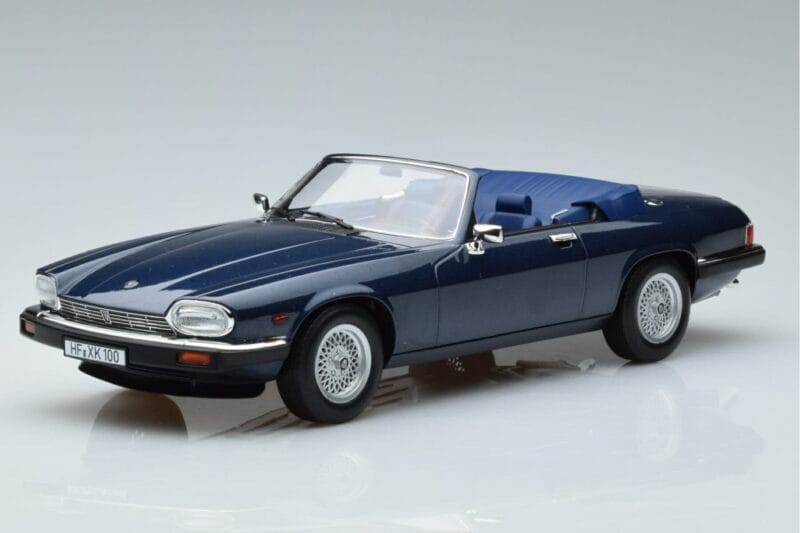 The Jaguar XJS V12 Convertible Blue Metallic Limited Edition Norev 1:18 is crafted from Diecast. Die-cast zinc alloy body with detailed plastic parts, rubber tires, and high-quality paint finish. Die-cast models are known for their weight, durability, and realistic feel.